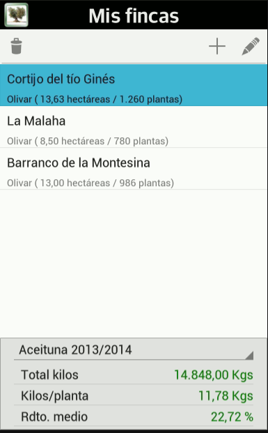 Controlar los kilos diarios recolectados, el total por cada finca, cuántos por olivo o el rendimiento medio de cada jornal lo permite esta aplicación